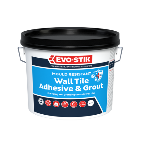Evo-Stik Tile A Wall Waterproof Adhesive & Grout for Ceramic & Mosaic Tiles - White - 2.5L