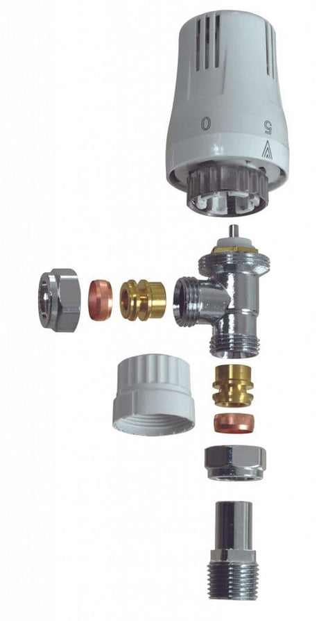 Westco Westherm Chrome Angle TRV Lockshield + Reducer - 15mm