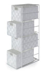 Features a white plastic coated metal frame with 4 basket woven effect drawers
