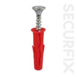 Securfix General Purpose Red Plugs With Screws - 20 Pack