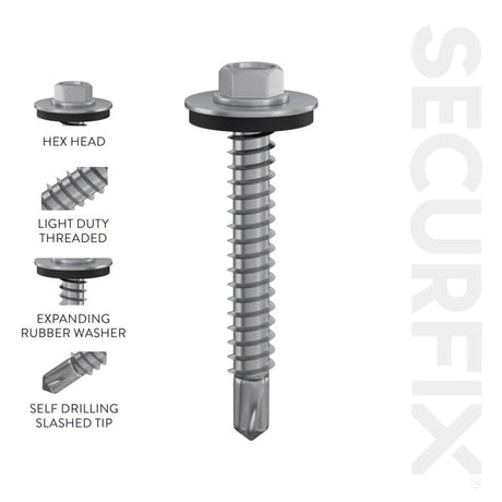 Securfix Self Drilling Roofing Screws - Size: 12 x 2" (5.5 x 51mm) | Pack of 100 Screws
