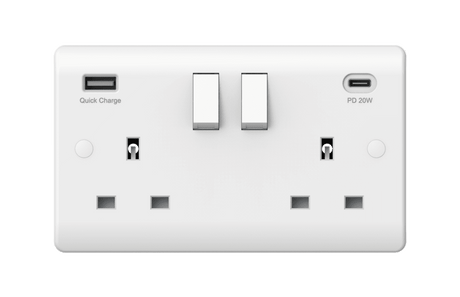 Securlec 2 Gang Switched Socket Double Pole With USB A + C