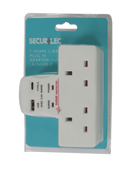Securlec T-Shape 2 Way Plug-In Adaptor 1 x USB-A, 1 x USB-C - 2100ma