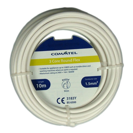 Commtel 3 Core Round Flex White 10m 1.5mm2