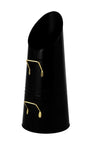 Durable iron construction, powder coated in gloss black and sturdy gold brass handles.