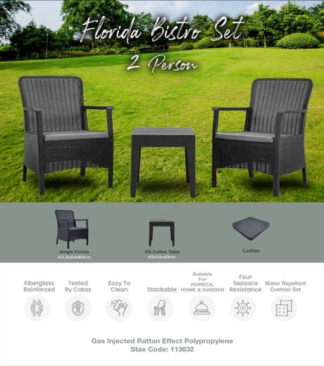 Professional Florida Anthracite Bistro Set - 3 Piece