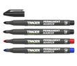Pack of four 1-2mm bullet point TRACER Permanent Markers, ideal for all general purpose marking. The pack includes: 2x Black Markers, 1x Blue Marker and 1x Red Marker.