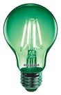 Each LED filament is coated with a unique GREEN coloured fluorescent phosphor creating the most intense and saturated colours on the market, - Clear outer A60 bulb ensuring no light losses due to absorption by painted glass bulbs, ensuring high lumen output, - Full glass construction with no external lacquer coating to peel or scratch off when used outdoors, ensuring long-life colour, - IP54 water/dust/dirt resistant