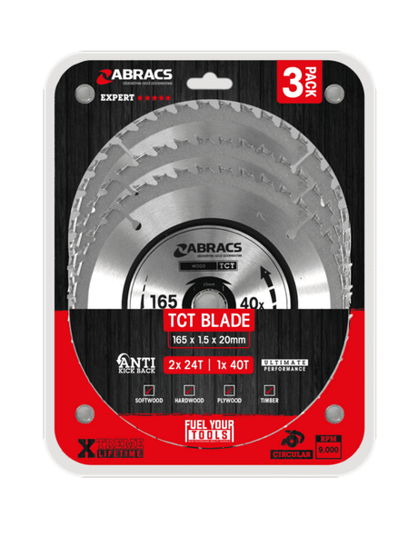 Abracs Circular Saw Blade - 165mm x 20mm Pack 3 240v