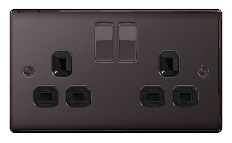 BG 13a 2 Gang Switch Socket - Black Nickel With Black Inserts