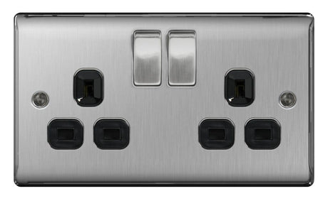 BG 13a 2 Gang Switch Socket - Brushed Steel With Black Inserts