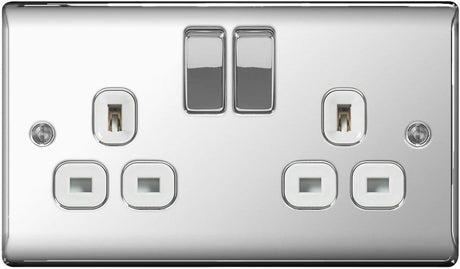 BG 13a 2 Gang Switch Socket - Polished Chrome With White Inserts