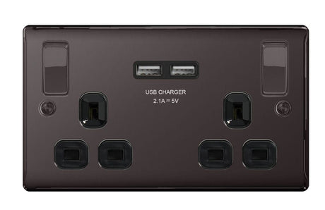 BG 13a 2 Gang Switch Socket & USB - Black Nickel With Black Inserts