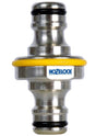 Metal double ended male connector allowing two lengths of hose equipped with female connectors to be joined. Made from Nickel Plated Brass which ensures a strong and durable connection. Scratch and frost resistant, the Metal Double Male End PRO Connector comes with a 3 year guarantee.